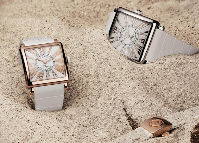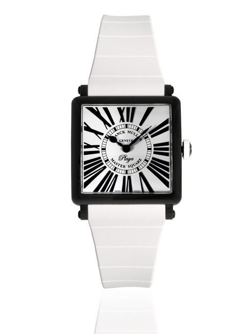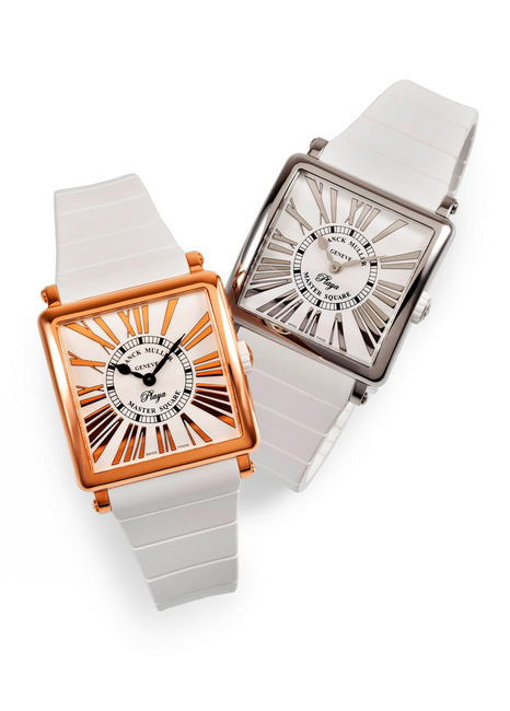 FRANCK MULLER为全新的Master Square Playa系列揭开面纱,雅致流丽,散发出婉约的女性风采,为今夏必备。手表设计尽显优雅,却不失动感,这款最新推出的手表适合日常佩戴,却于夏日和煦的阳光之下更见华丽。面盘全由FRANCK MULLER制造,饰以浮雕罗马数字时标,读时清晰。腕款配以橡胶表带,搭配精钢、18K红金或18K白金折迭表扣。