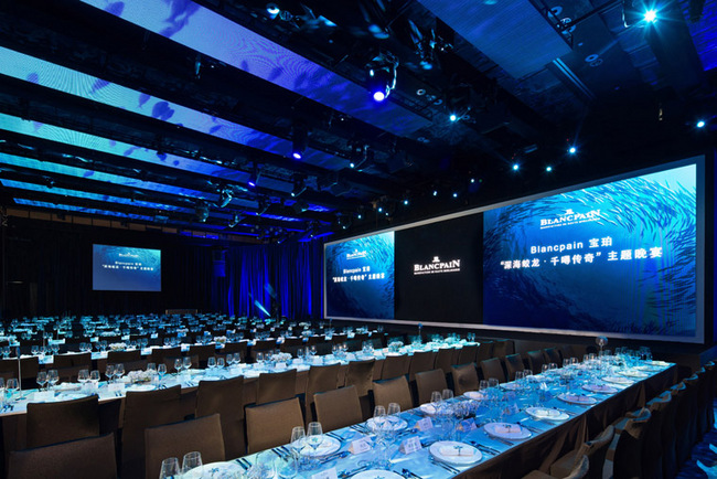 ▲ BLANCPAIN充满深海风格的晚宴会场