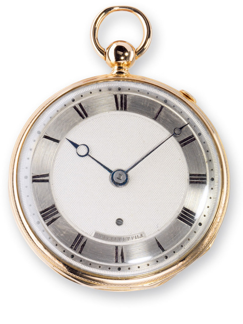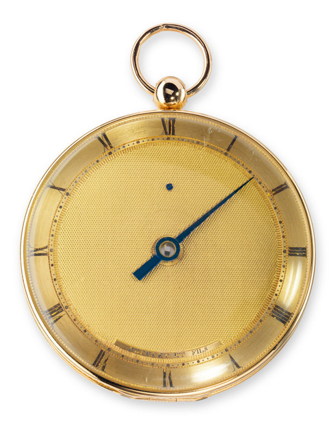 中型黄金表壳,金质手工鐫刻面盘,红宝石柱轮擒纵机构,直径 57 毫米。于13年果月3日(1805年8月21日)以1,200法郎售予迈耶及Tues先生。