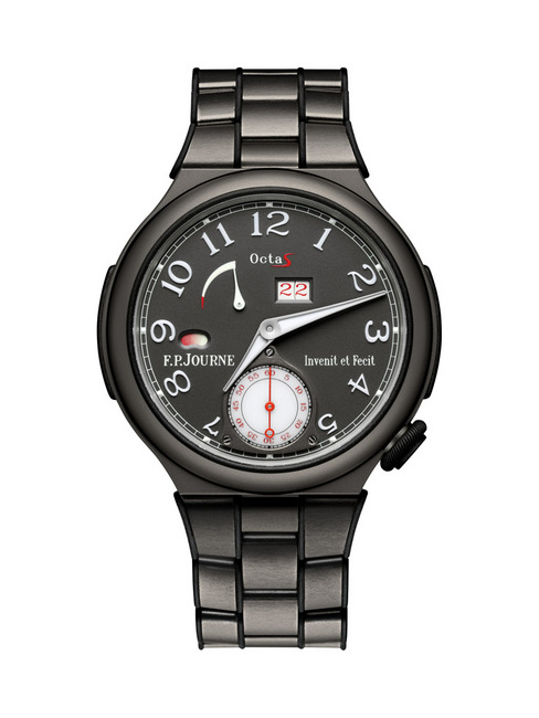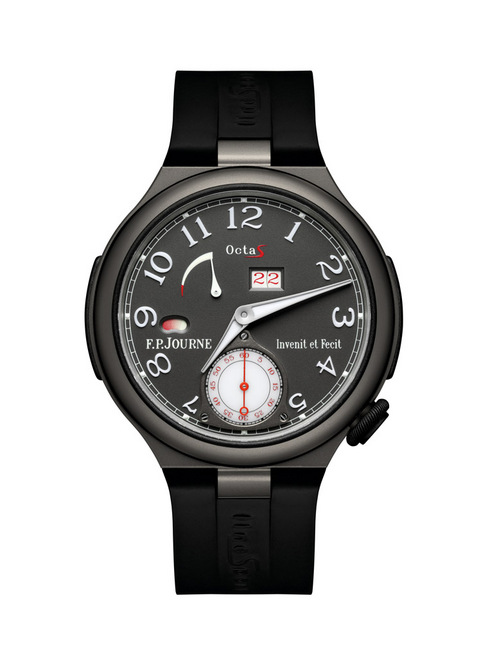 F.P. JOURNE为lineSport运动系列的Octa Sport手表增设鈦金属版本。手表表壳以5级鈦金属打造而成,这种高科技材质十分轻巧,呈深灰色,并作哑光修饰;面盘和机芯则以铝合金制造,因此整枚手表无比轻盈,重量仅为60-70克(视乎手表搭载的是鈦金属表鍊还是橡胶表带)。