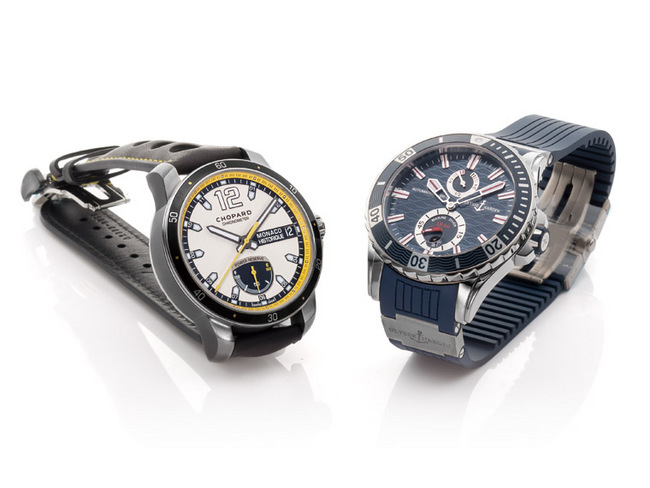 ▲ 左为CHOPARD Grand Prix de Monaco Historique Power Control,右为ULYSSE NARDIN Marine Diver。