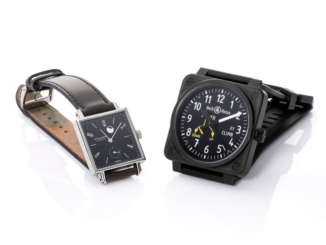 ▲ 左为NOMOS 436 Tetra Gangreserve Anthrazit,右为BELL&ROSS BR 01-97 Climb。