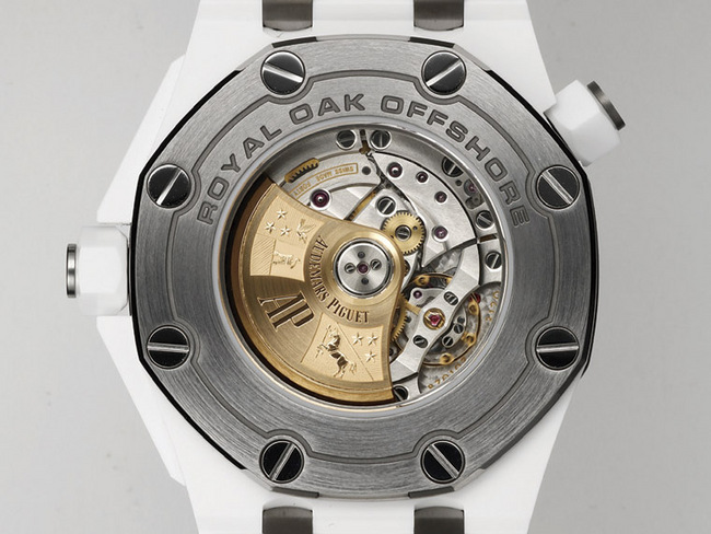 近年来我们已经习惯了表厂变换各种不同顏色的表圈、表壳或是其他部件,这可以说是时下最 流行的着色技巧;当然我们还知道陶瓷的发色关系到化学变化,因此未必什麼顏色都做得出来,不过过去笔者个人是以为儘管顏色不同,但各色陶瓷的基本性能应该是差不多的。不过这次读了这款的资料我才知道,同样是陶瓷材质,但是 AP 白陶瓷的硬度比黑陶瓷高上了 40%(维氏硬度 1850:1300),也就是说这次的新款不只外观不同, 连性能规格都有所提升。