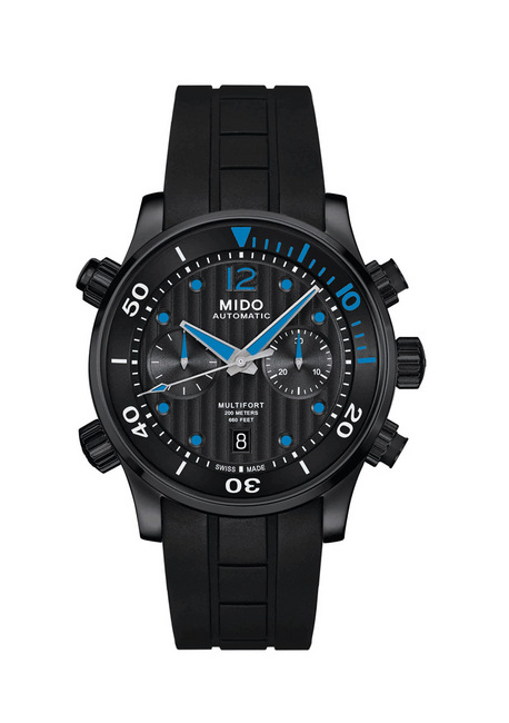 先锋系列潜水表自2013年推出以来即广受好评并获得热烈回响,引领手表运动时尚风潮,MIDO不断追求手腕上精巧艺术的突破,先锋系列首款潜水计时手表使用SWATCH Group独家研发的Caliber 60机芯,採用27颗红宝石镶嵌在表中发挥轴承的作用,大大降低摩擦力和损伤,体现出设计风格的精湛工艺与鬼斧神工的技术,机芯动力储存功能大幅提升至60小时,延长配戴时间,让潜水玩家尽情悠游海洋世界。除了动力储存提升之外,更新增计时码表功能,计时功能置于中央大秒针60秒计时盘,2点鐘位置的旋入式按压计时表冠;4点鐘位置旋入式按压计时归零表冠,整体採用旋入式表冠,更加强化表体本身的防水性,内嵌式锁芽于深潜时也能有效防水,防水200公尺。3点鐘方位30分鐘计时盘,9点鐘方位为小秒盘。3点鐘位置的表冠,可进行设定时间、上鍊;10点鐘方向的表冠为日期调整;8点鐘位置的表冠则为单向转盘潜水计时器,让潜水家可计算氧气筒所剩时间,专业潜水必备;配合专业计时功能。