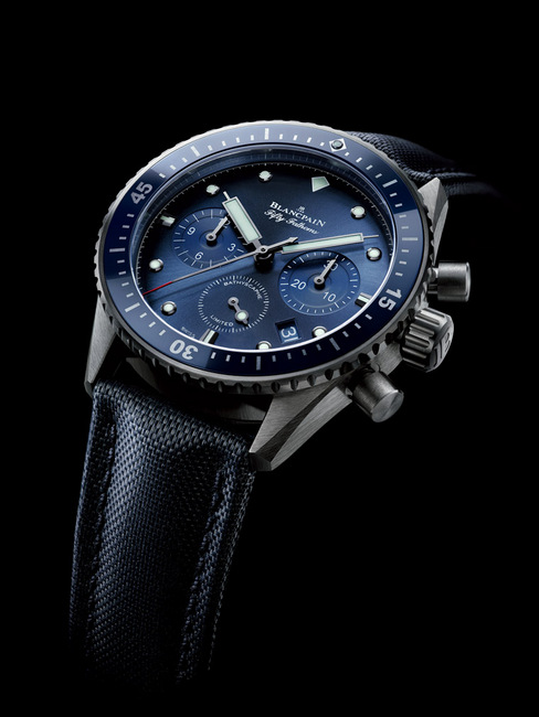 ▲ BLANCPAIN「心繫海洋计画」Bathyscaphe飞返计时码表限量版採用灰色陶瓷表壳,自动摆陀上更刻有「心繫海洋计画」独一无二的印记。