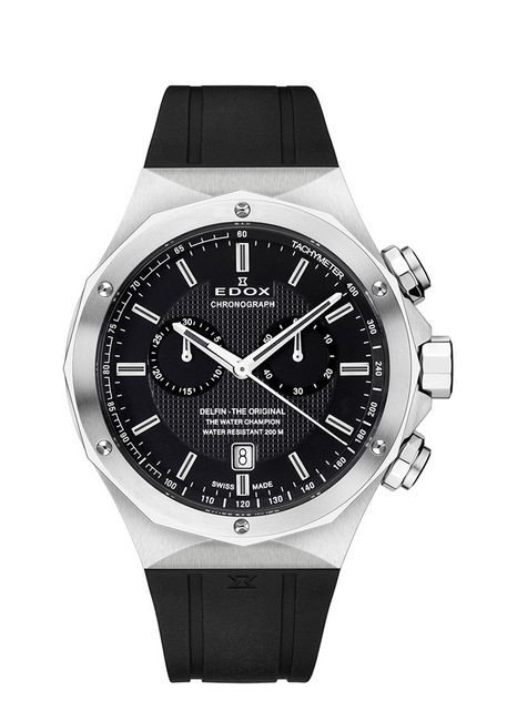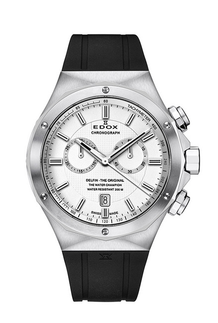 针对21世纪的表迷们, 瑞士依度表以超过50年的防水表专业领域经验重新演绎Delfin计时码表, 经典的復古表壳造型保留原创精神——特有70年代不銹钢的表壳,十二边形表圈设计。採用EDOX 10 Ronda 5040.B机芯, 拥有坚固的强化后底盖,表底盖上鐫刻水上冠军的标誌,沿袭之前的骄傲即使在深海高压的环境中也能顺利运行。