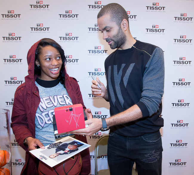 活动现场邀请超过200名粉丝来到名品店与Parker一同欣赏天梭表系列手表,其中45人参与了篮球比赛。篮球比赛参与者必须在一分鐘内依序完成下列叁种投篮动作:上篮、罚球与叁分球。获胜者Zipporah Morris以最快速度完成这项挑战,并获得尼克队比赛门票及一只天梭表T-Touch Expert Solar Tony Parker限量版手表。