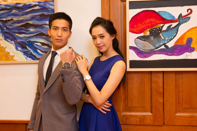 ▲ 艺人吴翔震(左)与名模王心恬各自为BLANCPAIN献上以海洋为灵感的画作。