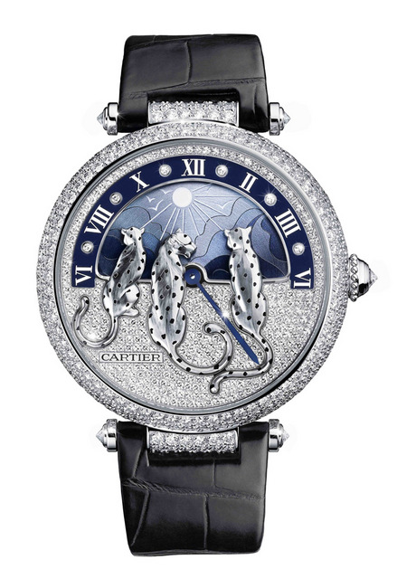 ▲ Rêves de Panthères幻梦美洲豹昼夜显示腕搭载 卡地亚9916 MC型自动上链机械机芯