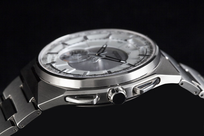 跳脱传统高科技手表厚重繁复的造型,CITIZEN光动能卫星对时手表CC2001-57A所搭载的F100机芯除了拥有光动能以及卫星对时的先进技术,手表的厚度却只有12.5毫米,更是轻薄时尚,而表壳与表带皆以专利的鈦物料打造并且经过CITIZEN独特的表面硬化技术处理,让手表整体不仅轻盈更加耐磨损。以高质感的银色系打造表壳,搭配上面盘上有条不絮的佈局以及按键的鏤空巧思,展现出光动能卫星对时手表CC2001-57A在科技感之外的优雅绅士风范。