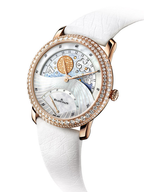 ▲ BLANCPAIN全新Woman系列将昼夜显示加大,在转动同时能欣赏到日夜半球两款精细雕工的美丽。