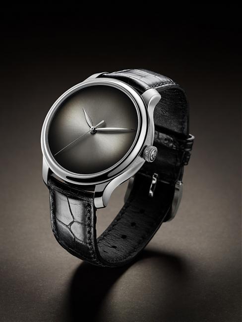 泼墨是一种艺术也是一门工艺,亨利慕时(H. MOSER & CIE)的烟燻(Fumé)面盘也是如此。作为品牌独有的标誌性Fumé面盘由位于Schaffhausen的制表厂精心打造,每一枚面盘都经过精密手工处理,并由人手超过30次的打磨直至拥有旭日纹(Sunburst)效果,再经过手工喷砂和修饰后,表面那旭日纹图案会呈现犹如太阳光般放射式的美感,并且这种图案还会产生奇妙的光线变化,随着接近面盘的边缘而逐渐表露层次感。这种制表工艺与泼墨画有着异曲同工之妙,制表师们用最精湛的技艺给予人们极致的低调奢华之感,而这一点在亨利慕时的Concept Watch上体现的淋漓精致。
