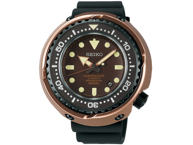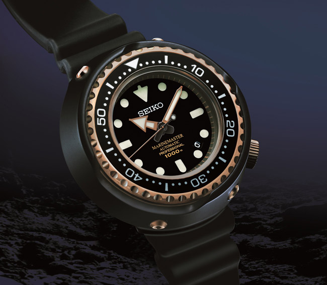 今年新款除了外型延续SEIKO专业潜水表DNA,潜水表也配备双层表壳,内壳结构周密,其中L形垫圈至今仍是世界上具有最高等级气密性的防氦独家设计,搭配旋入式背盖,加以确保深潜安全性;陶瓷外壳保护圈设计为手指可操作的轮廓,完整包覆表壳,可达1000m饱和潜水用防护等级,堪称深海中的潜将,今年初春于瑞士Baselworld巴塞尔表展首度曝光,旋即成为表坛热门话题。