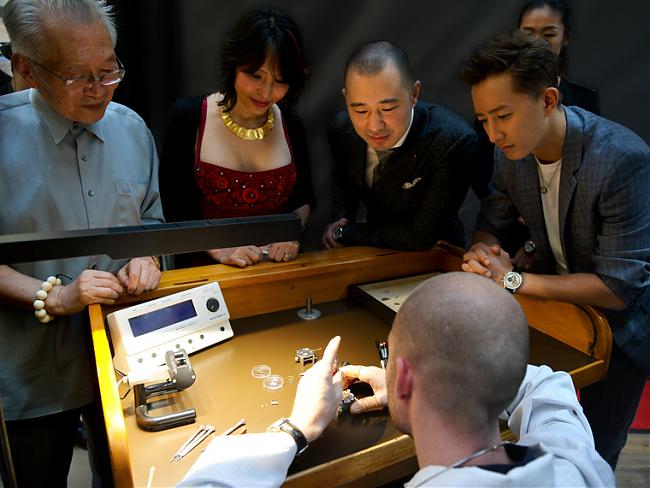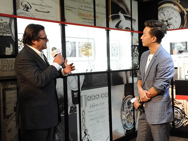 接下来是古董表陈列区,真力时全球总裁奥尔多.莫卡达与韩庚向在场来宾们介绍示了多款难得一见、从瑞士远道而来的真力时古董时计孤品。透过这些古董时计作品可以一窥真力时150年来对于手表制造的创新与坚持。