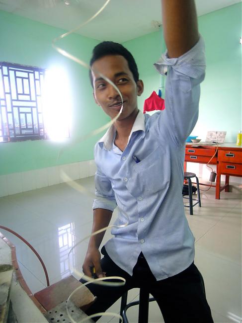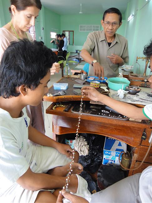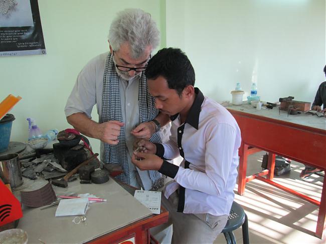 25位青年男女学徒将在 Bottega dell’Arte参加为期两年的课程,跟随冶银工艺重镇Kompong Luong 的资深工匠学 习基本的冶银技术。此外,为培养学员的创新精神和创意想像,Bottega亦安排学员参观博物馆和展览、拜访当地 艺术家,以及每年邀请义大利艺术家或珠宝设计师驻校 一个月,传授创作心得。Bottega dell’Arte不仅为学员提供学习的地方,更妥善照 顾他们生活,为吸引学员参与课程,所有学员将获领生活 津贴,并提供营养丰富的午餐。学校亦安排于暹粒的Angkor National Museum(吴哥国立美术馆)展出学员的作品,以提高学员知名度,并透过实体及网上代理商, 让作品可于当地及国际市场上贩售。同时,他们的作品获2015年世界博览会柬埔寨展馆选为代表国家的展品。
