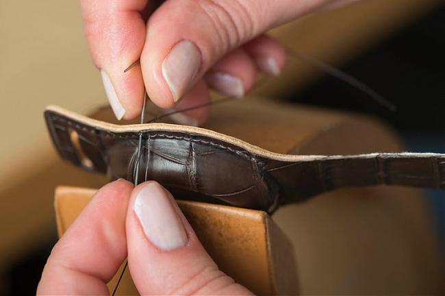 马鞍式针步缝合是HERMÈS的王牌,此于百多年前的人手穿针法是用两支缝针来回缝合,就算其中一面缝线因磨损而断开,皮革亦能紧紧贴服。