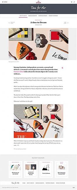 欧米茄长久以来致力于女表工艺,2015年品牌为了这些心血成果誌庆,引领女性潮流的里程盃。在诸多的庆祝活动中,欧米茄网站首度推出「她的美丽时光」专栏区,其中的线上日誌精彩可期,将每週更新,读者可以阅读专为女性撰写的崭新特辑,也能重温欧米茄的光辉时刻和经典风华。