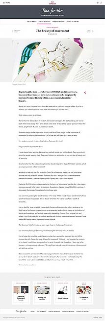 「她的美丽时光」线上日誌已经上线,有12种语言可供阅读,透过Garance Doré撰写的专栏,读者一定会找到许多新鲜的听闻,毕竟欧米茄对女人和女表的百年真心深邃诚挚,裡面自有说不完的故事。
