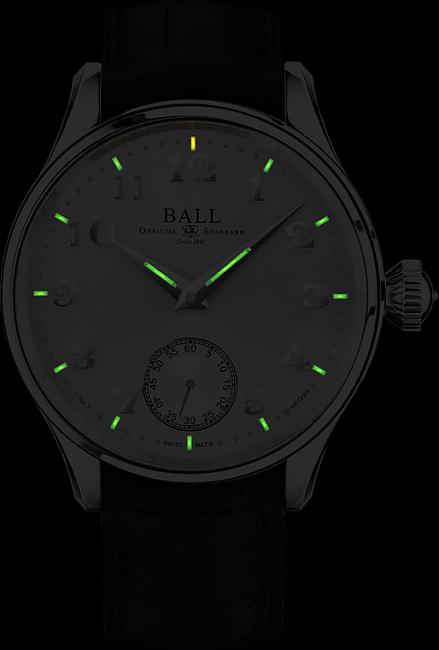 在精巧纤细的Trainmaster Cleveland Night Express型号,表壳内搭载瑞士手动上鍊机械机芯,其超卓的准确性与BALL Watch对精准的追求一脉相连。表盘上的阿拉伯数字字型流露古董枱鐘的古典神髓,表盘周边刻有精密的分鐘刻度,六点位置饰以小秒表盘,蕴含最精致的工艺。