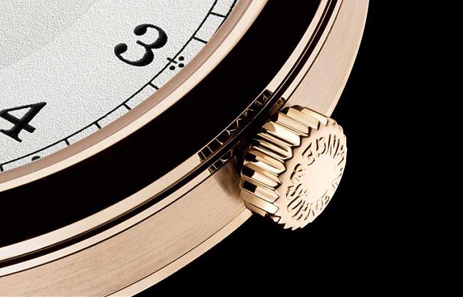 朗格呈献第二枚週年纪念版手表,向200年前诞生的费尔迪南多阿道夫朗格致敬。此1815限量款搭配18K蜂蜜色金表壳并缀以银白色粒纹的实心银表盘。1815 「200th Anniversary F. A. Lange」 18K蜂蜜色金纪念款手表限量发行200枚。