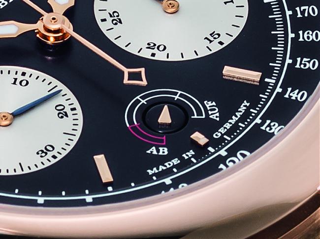 405.031/18K玫瑰金材质/L951.6手动上鍊机芯/时、分、小秒、大日期显示/飞返计时码表功能/动力储存显示/蓝宝石水晶镜面、透明底盖/表径41mm/参考价:NT$ 2,274,000