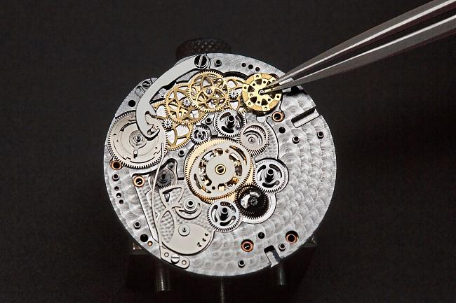 18K白金材质/自动上鍊机芯/变速分、逆跳时显示/珍珠母贝、金雕、微型彩绘工艺面盘/表款镶钻/蓝宝石水晶镜面、透明底盖/表径38mm