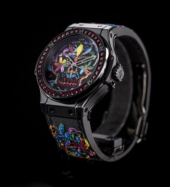 HUBLOT宇舶表以Big Bang系列手表的融合艺术概念而获奖无数,2016年将于日内瓦表展推出Big Bang糖果骷髏刺绣手表,延伸自荣获2015年日内瓦高级鐘表大赏「最佳女性手表」殊荣的Big Bang银刺绣手表,以高级订制服设计灵感,将精湛制表工艺结合时尚元素欧根纱与瑞士传统刺绣,再度验证HUBLOT的十足创意。