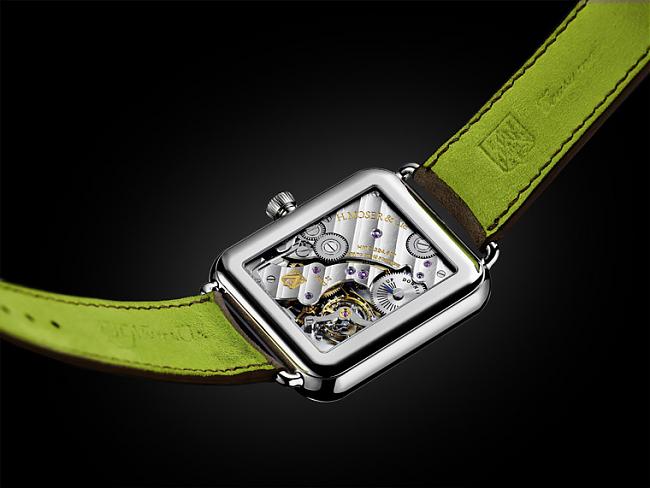 它拥有的功能不是什麼GPS卫星定位、收发电邮、阅读新闻等,而是传统手表领域中最直接实际的时、分、小秒及设置于表背、最少逾100小时的动力储存显示。长方形的表殻跟智慧型手表的典型摩登设计非常相似,面盘採用了品牌经典的Fumé烟燻色调,再衬以尖细的表耳及羚羊皮表带以营造出復古质感。有趣的是,在羚羊皮表带内另外採用绿色皮革作点缀,让手表的风格平衡于復古与现代气息之间。