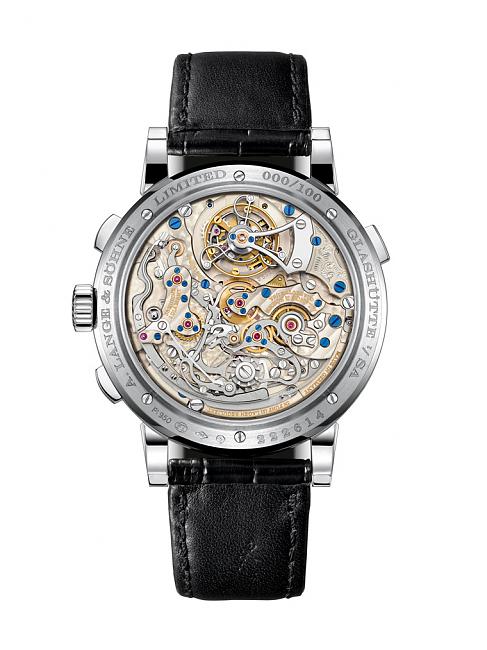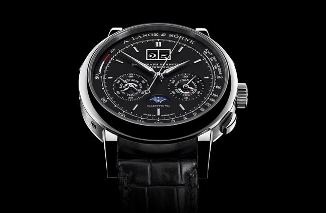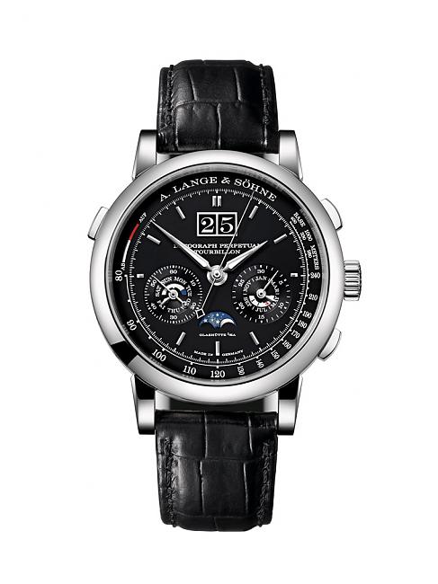 在研制这款拥有多项复杂装置手表的过程中,最艰巨的挑战莫过于完美协调不同复杂装置,唯有准确组装才能确保手表运作畅顺。朗格的 Datograph Perpetual Tourbillon绝对称得上是制表杰作。 最新推出的黑色实心银表盘设计,与41.5毫米铂金950表壳,以及18K黄金镀銠指针和小时刻度相互映衬。此表限量制作100枚。其名称亦涵括了丰富的计时特色: