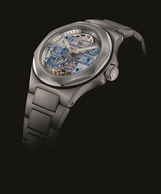 此系列后来更加入全透视的叁桥陀飞轮设计。蓝宝石水晶制成的表桥与蓝色尖晶石塑造出悬浮视觉效果,令这款手表成为风靡国际的崭新设计。