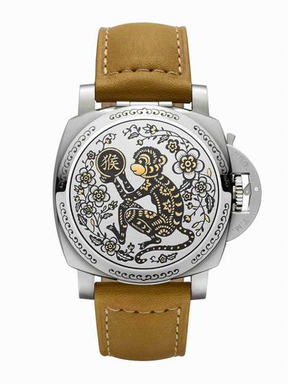 猴表压轴的款式势必要是沛纳海。动物表行之有年的沛纳海推出一只生肖表自然是合乎期待,而沛纳海从2009年开始也因映中国农历年推出生肖表,习惯收集成套的藏家想必大有人在。而这次的猴年表发表较晚,官方也并未主动积极曝光,不过网路上早就有表迷曝光实品照,Luminor 1950的表壳,秉持一贯的双色金雕,做出如窗花剪纸般的画面,呈现道地中国风。