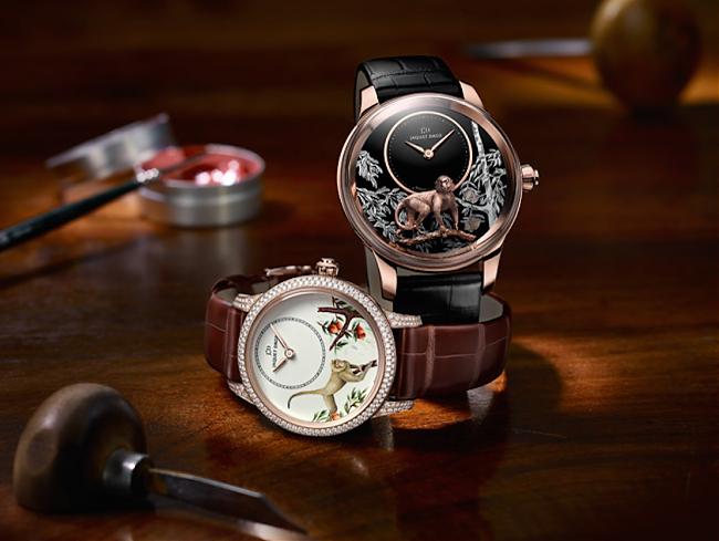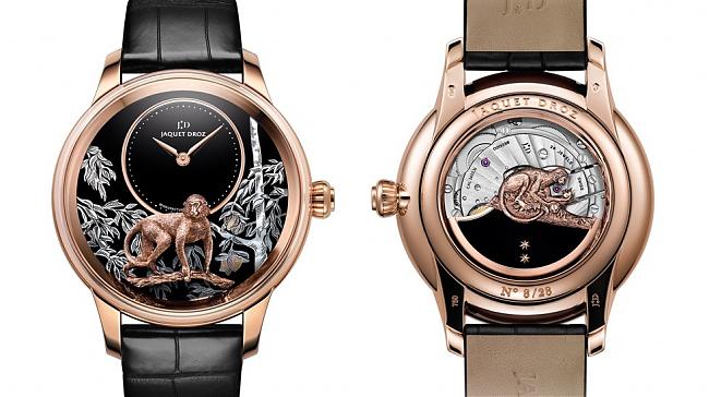 雅克德罗的工艺表行之有年,换成生肖主题基本上并不是什麼太大难事,猴年雅克德罗以中国着名的经典文学——《西游记》中的孙悟空为灵感来源将猴子跃上树枝摘桃的景象完整地呈现于面盘,取蟠桃长寿之意,个别推出大明火微绘珐琅与金雕漆面二种工艺表款。