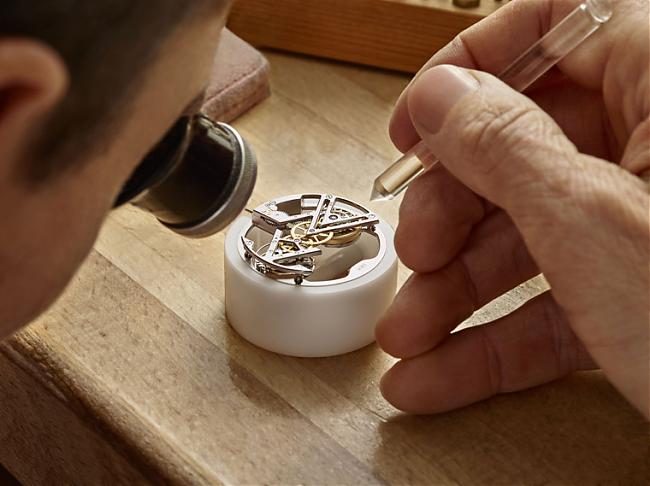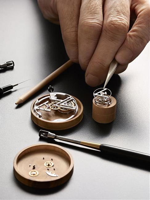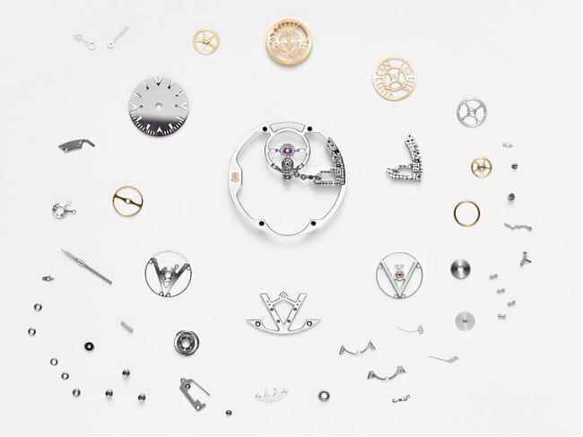 日内瓦印记飞行陀飞轮手表的美基于其极简的设计。该表款的特色在于鏤空留白和双面透视,这种设计本身便是非凡技艺的体现。在六点鐘位置,一款全新的陀飞轮以每小时21,600的振频,每分鐘自转一圈。这款飞行陀飞轮与手表整体的轻盈纤薄完美和谐。为达到这种效果,机芯正面没有夹板,仅从背面得到支撑。