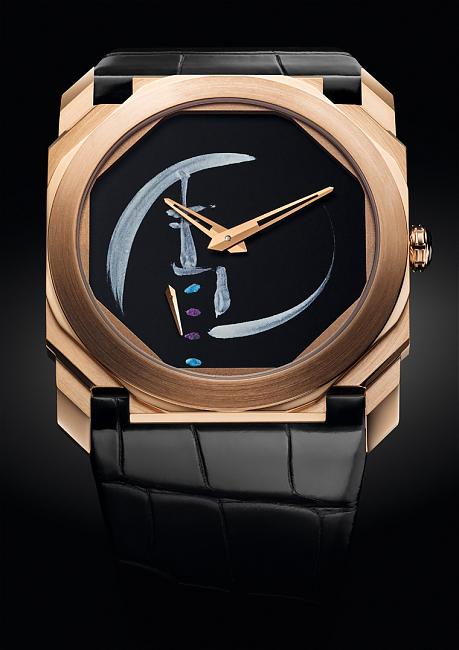 BVLGARI与艺术家Simon Ma合作,打造出一系列独一无二的Octo手表。Simon Ma(马兴文)是其中一位最杰出的当代中国艺术家。他体现出东方与西方之间的融和,并把自己定位为一个跨界艺术家,结合多种主题和主题性的表达方式。这种表达模式与BVLGARI一直以来所秉持的信念很相似,也即揉合多种灵感和珠宝制作的才能。这两个创意世界因而产生交集,并促使这个由13枚Octo手表组成的系列的诞生。这个系列是为大中华而设计的,每一枚手表的表面均是Simon Ma的创作。
