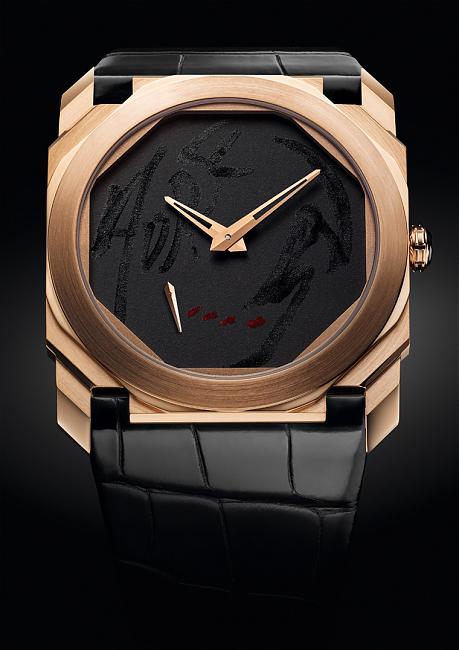 因此,每一枚手表都配置一个由Simon Ma设计的面盘,他在面盘以特定的色彩勾画出象徵性的图案,令人联想起这雄纠纠的动物。瑞士人手雕制的面盘和表意符号的结合,成为一枚枚真正的个性化杰作。此为大中华鑑赏家而设的限量系列,包括12枚採用品牌自制的手动上链BVL Calibre 128型号机芯的Octo Finissimo Petite Seconde小秒针手表。最后是一枚独一无二的Octo Finissimo Tourbillon陀飞轮,採用性能卓越的BVL Calibre 268型号机芯。此手动上链机械机芯是迄今世上最薄的陀飞轮机芯。此限量系列的每一枚手表均附设一个由Simon Ma设计的精美表盒。