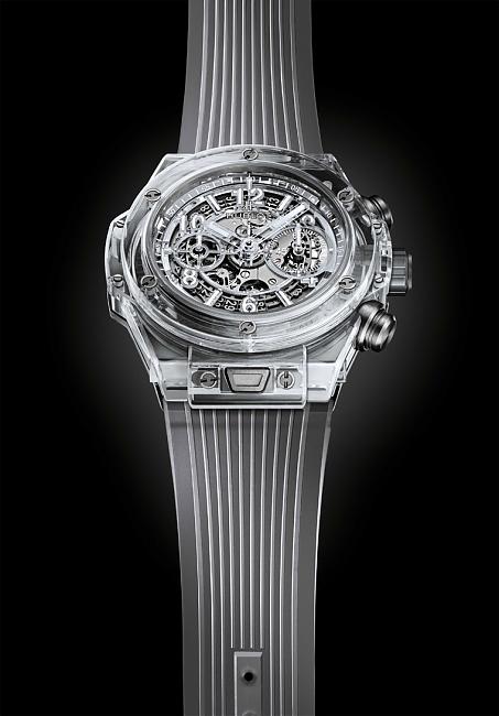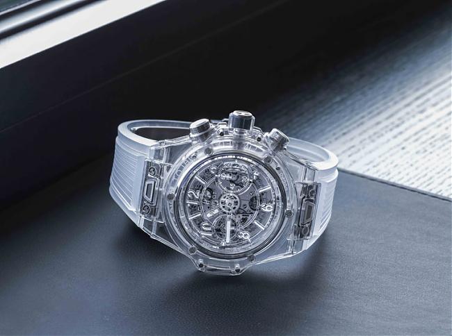 再度颠覆制表规则并引领全新设计潮流的宇舶表,打造出「全透明」手表概念,颠覆自然顺序,呈现全新「不可见」与「可见」的透视哲学。2016年HUBLOT已制造出500只Big Bang Unico蓝宝石表款,由蓝宝石直接切割制作而成,保留独特且稀少的透明质感,使得手表的构造和机芯一览无餘。