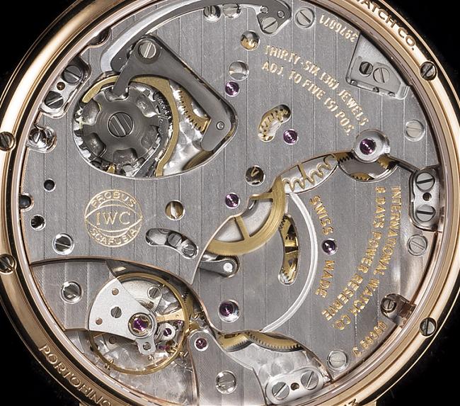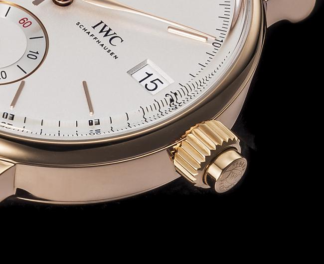 IWC万国表的59系机芯是用于取代他们家的古董机芯98系的新一代手上鍊基础机芯,八日的长动力可以说是品牌的家学,而机芯从2011年推出以来也发展出相关型号,2015年甚至推出了单按把计时码表。动力储存显示算是59系的标准配备,就算没有出现在表面上的也会做在机芯夹板上,而相对于自动上鍊的52系,这项功能对手上鍊的59系来说无疑更具意义。59系的储能显示指针轴心是位在8点鐘(面盘侧),不过实际佔据的面积从8点到10点这一块都是,对应到表面的格局算是颇为中正的位置,因此跟其他功能在配置上的相容性也很好,以这款的直双眼计时码表来说就刚好平分了面盘的6、9、12叁个象限,再加上日期窗和Logo整个表面就无欠无餘了,相当平衡。59360作为计时机芯操作感相当突出,由于导柱轮的尺寸既大,轮齿又深,每次按压时的段落分明,手感明确,相当有操作的实感,在现代的计时机芯中并不常见。
