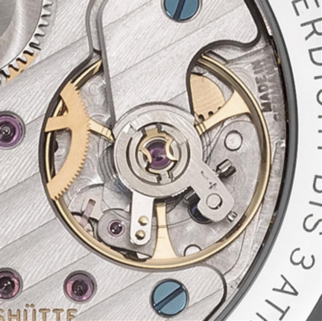 DUW 4401跟δ(Delta)机芯的差别基本上就是调速擒纵器,而在外观上可资辨识的就是它的蓝色游丝,品牌如今做到自产游丝,相当不容易。