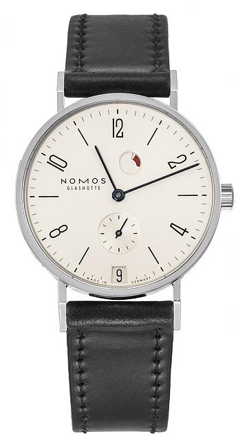 NOMOS近年最主要的发展方向就是自制的普及化,除了新推的自制机芯,另一部分就是将既有的型号换装自制的调速擒纵器。像是这款Tangente Datum Gangreserve算是NOMOS的老经典了,然而内部搭载的DUW 4401机芯却是将原本δ机芯的调速擒纵装置换成品牌自家的NOMOS Swing System,其中用上了他们自行生产的蓝色游丝。NOMOS的动力储存显示算得上是一绝。储能显示这种功能看似简单,其实做起来还挺麻烦的,因为它在表现动力的蓄积和耗损时分别是由两个不同的系统来驱动的,并不是在发条盒上装根指针那麼简单,因此会动用到不少零件,连带地也有故障的风险。NOMOS的储能显示其优点在于构造极其简单,核心零件只有叁枚齿轮而已,跟一般动輒十几枚零件的复杂相比简直是少到不可思议,但却又能确实达到显示动力残量的目的,的确是相当聪明的设计,似乎反映出这个牌子从设计师到工程师都是包浩斯的信徒。