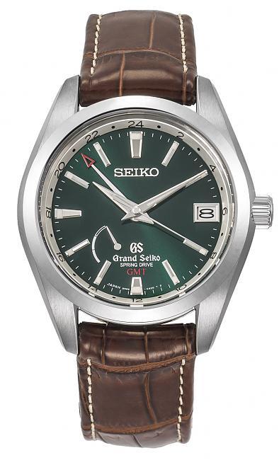 近年Grand Seiko的皮带款式似乎有增多的现象,长久以来GS的表款都以鍊带为主力,也许是受到限定復刻版都採用皮带的带动,现在在一般款式中搭配皮带的感觉也多了不少。这款SBGE033在日本是专卖店特别款,限量500只,而台湾这次也配到了10只。表款基本上是SBGE的特仕版,主要只换装了绿色面盘和皮带,另外就是时分针和时标有点小改。绿面在GS中颇有一定的地位,过去有不少限定款都用过绿面,做法有时也有出入。以2014年推出的9S86高震频GMT来说,它的限定版同样是绿面,不过盘面却有手雕的放射纹,相对地这款就少了这一道工;从外观看来这款的绿面应是电镀,而像这种深色以电镀制作发色不易,要维持成品的一致品管相当不易。指针部分限定版加上了夜光,而时标在外圈也多了一道切口,这些细节再加上表带是茶色面缝白线的,让它虽然搭的是皮带,却不尽然是正装表的风格,反而有些运动表的气质。