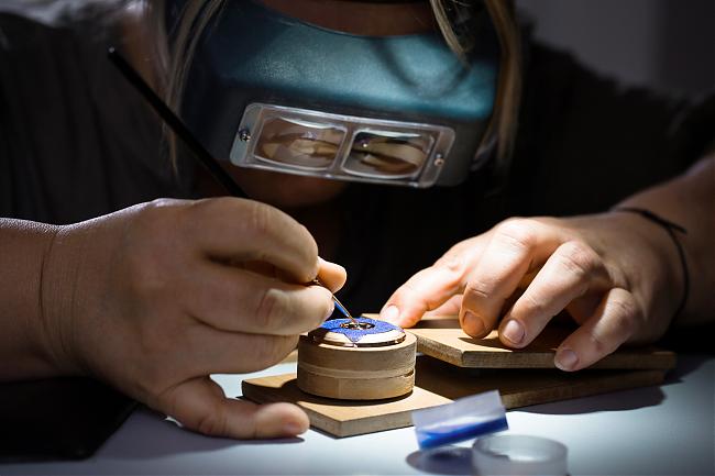 万年历经典HERITAGE腕表具备犹如怀表般的双盖式设计,扭索纹、雕刻和镶嵌工艺后的表盖上以掐丝珐琅技法打造,而大明火珐琅面盘上的罗马数字刻度,透露出简练绝美的出眾气质。另一方面,机芯机板採用纯金制成,透过可掀表底盖欣赏,展现古典气质。