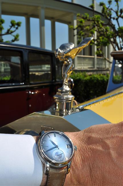 90位瑞士劳斯莱斯车迷俱乐部会员齐聚沙夫豪森,与精密机械及精湛工艺爱好者相见欢。他们在亨利・慕时的家族庄园Charlottenfels裡接受热情的招待。在如今作为慕时家族博物馆的庄园中,眾位嘉宾回顾品牌创办人的事业发展歷程并参观他的部分作品。随后也欣赏品牌的最新力作:叁款由亨利慕时为劳斯莱斯车迷俱乐部会员特别打造的专属限量腕表。包含冒险者小秒针(Venturer Small Seconds)和勇创者小秒针(Endeavour Small Seconds),皆採用午夜蓝色fumé烟燻表盘并在六点鐘方向装饰俱乐部标誌,同时也巧妙地加入Rolls-Royce诸多特色,提供镶钻表圈和无镶钻表圈款式。这叁款腕表的表背鐫刻限量编号,其中冒险者表款的机芯设计灵感取自劳斯莱斯的经典格栅,可透过蓝宝石水晶玻璃表底盖一览无遗。