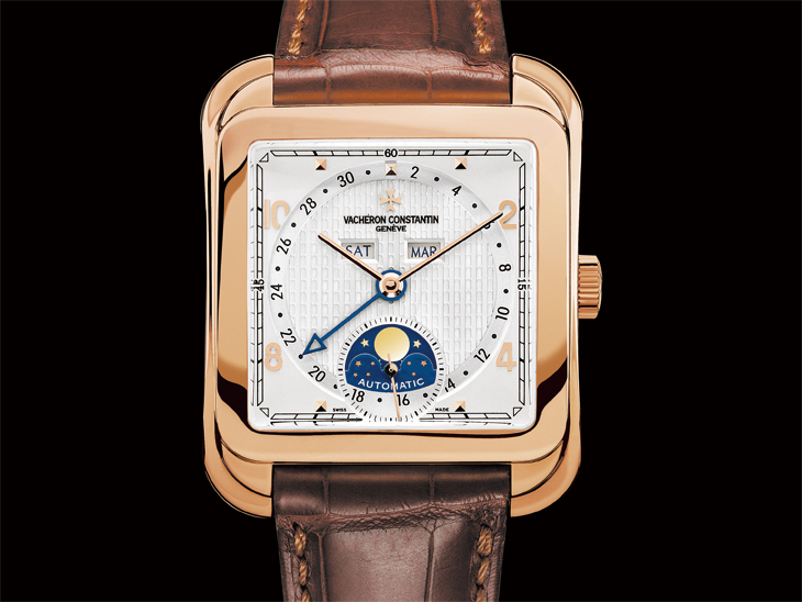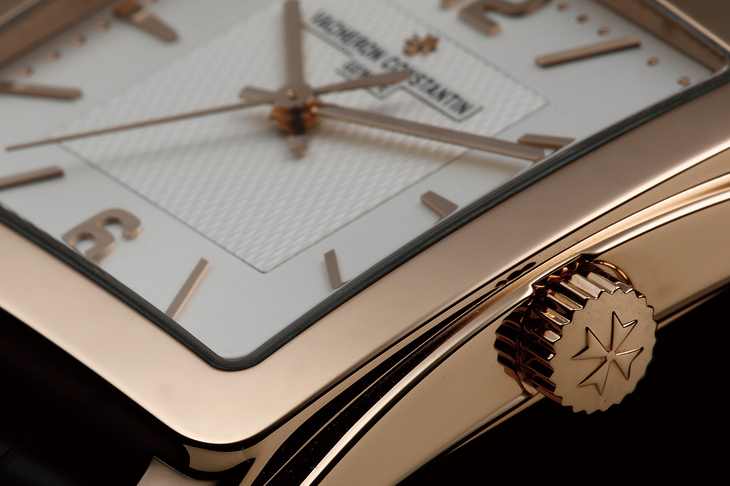 被暱称为「巧克力」表体的叁层次表壳结构,是江诗丹顿对五○年代美学的詮释,从几何图形中转化出方中带圆的线条,新款珍珠圆点的分鐘刻度与中央机刻雕花的设计,在在表现出表款多层次的视感美学。