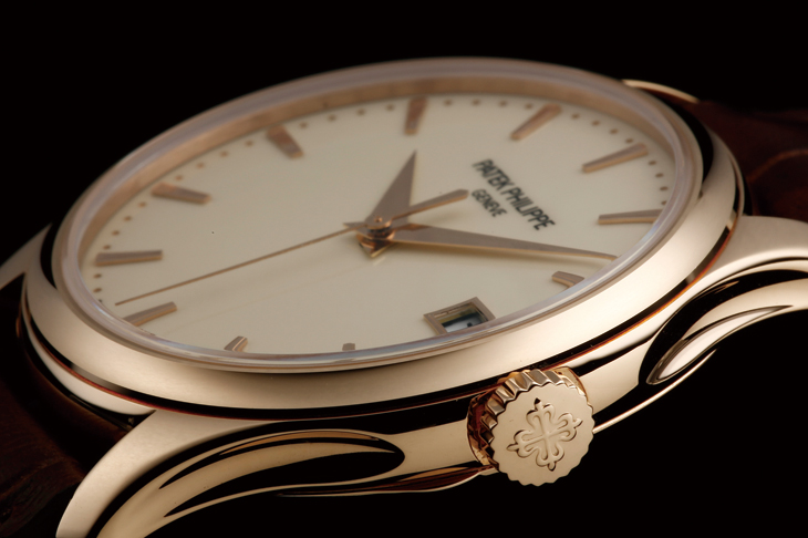 Calatrava新款表壳尚有一大独创特色;从侧面观看,可见弯弯有致的凹槽从表侧延伸,与表耳接合,让表壳更富神韵,突显雅致轮廓,外表更添柔美。每条凹槽皆由人手在金质表壳上雕刻而成,并一如表壳其他部件,由人手打磨至如镜面发亮,这部份的细节处理不是一般品牌可以达到的工艺水准,由此显见百达翡丽的表王技艺。百达翡丽致力营造如斯加工效果,务求让Calatrava Ref. 5227新款腕表倍添魅力。