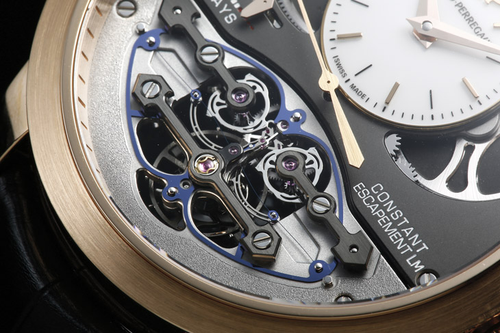 GP的恆定动力擒纵2008年就发表了,不过当时只有一枚裸装的原型机芯,想不到2013他们无预警把表做出来了,并且在年内投产,甚至一举拿下同年日内瓦鐘表奖的最高荣誉金指针奖。