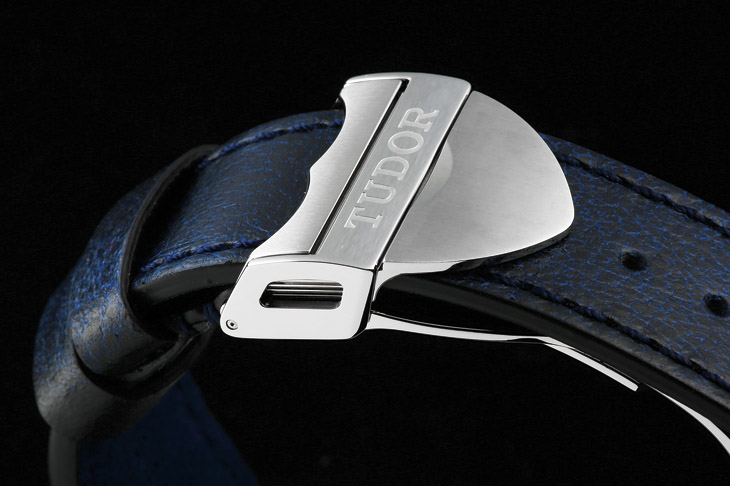 Black Bay的叁种表带中,鍊带和皮带是配折叠扣,织纹带则是配针扣。皮带的折叠扣造型採用了Logo中的盾形,拋磨也相当精致,只是Black Bay採用的是蔷薇Logo,在这裡出现盾形稍有矛盾。