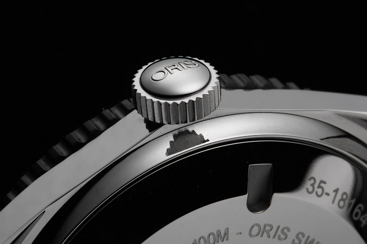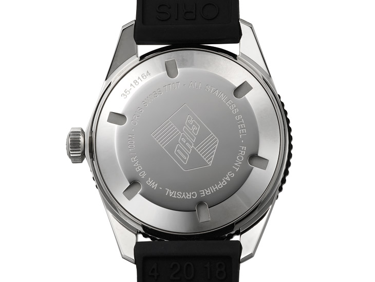 ORIS少有不做透明底盖的,而这款100米的防水深度也不成其为作实底盖的理由,之所以如此主要还是为了忠实復刻。表款搭载的是Sellita的SW 200-1机芯,相当于ETA 2824。