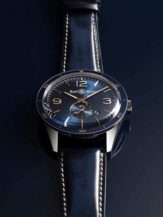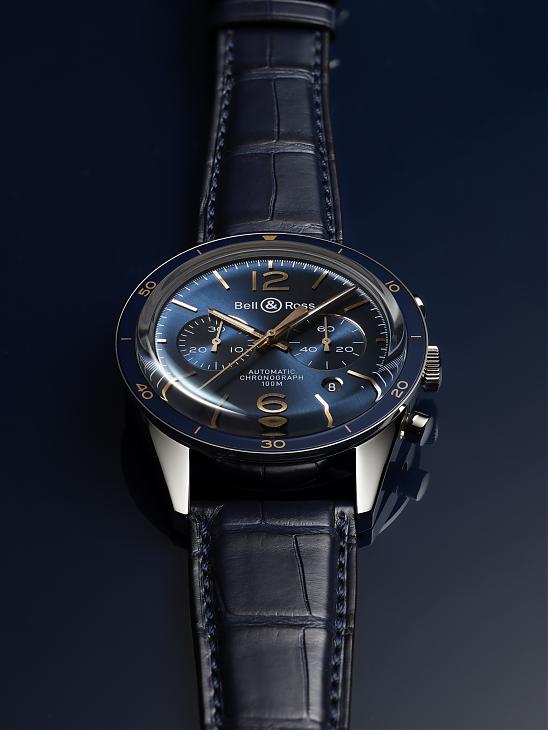 VINTAGE BR AERONAVALE系列增加了两个新表款:一款计时码表与一款叁指针小秒针腕表。42毫米直径拋光精钢表壳散发时尚復古魅力。两款腕表上的镀金鏤空时针和分针在海军蓝旭日纹表盘的衬托下更加耀眼。这两种顏色的对比既精致优雅,又具有出色的易读性。专为飞行员设计的VINTAGE BR AERONAVALE计时码表是一款融功能性和优雅风格于一身的时间测量仪器。