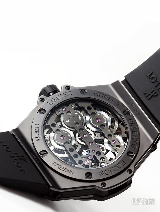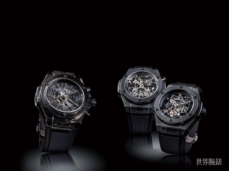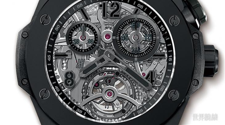 陶瓷材质/HUB 8110自动上鍊机芯/时、分、小秒显示/叁问功能/陀飞轮装置/计时码表功能/蓝宝石水晶镜面、透明底盖/防水30米/表径45mm/限量99只/参考价:NT$ 9,080,000