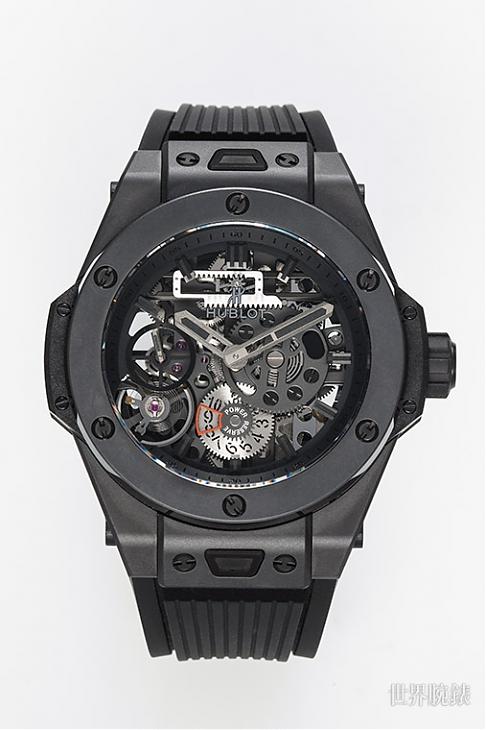 黑色陶瓷材质/HUB 1201手动上鍊机芯/时、分、小秒/双动力储存显示/蓝宝石水晶镜面、底盖/防水100米/表径45mm/参考价:NT$ 662,000
